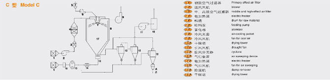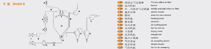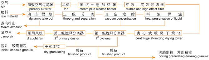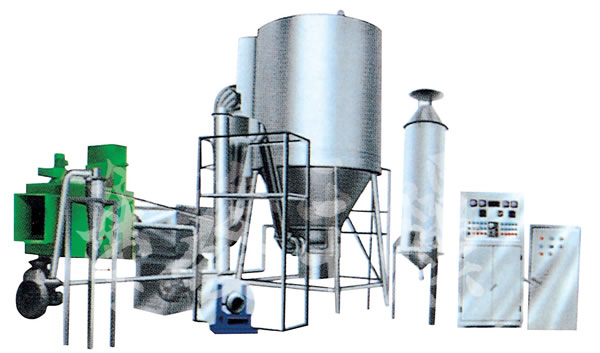該機(jī)采用全封閉形式,所有部件均采用不銹鋼制造,配有三級(jí)凈化裝置,過濾后的空氣達(dá)十萬(wàn)級(jí)要求。筒體與頂部裝有冷壁裝置,使壁溫<80℃,干燥塔內(nèi)裝有氣刷掃塔裝置。經(jīng)該機(jī)干燥后的中藥浸膏粉,不會(huì)出現(xiàn)焦化變質(zhì)現(xiàn)象,大大增加了收粉率(95%以上),而且不會(huì)產(chǎn)生混藥現(xiàn)象和粘壁現(xiàn)象。
