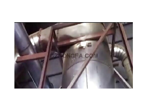 該生產(chǎn)線由供料系統(tǒng)、介質(zhì)循環(huán)系統(tǒng)、空氣加熱凈化系統(tǒng)、干燥塔系統(tǒng)、收料系統(tǒng)、控制系統(tǒng)等多個系統(tǒng)整合而成。主塔系統(tǒng)集中了目前噴霧干燥工程的所有尖端技術,噴干機組的收料系統(tǒng)由一級旋風分離器+布袋除塵器組合形成。一級旋風采用高氣量高效率旋風進行收集,其收粉率能達到96%左右分,而布袋除塵器是針對蛋白粉類除塵專門設計的優(yōu)化設備,能使物料與風進行完全分離并沉降,布袋為拒水防油防靜電布袋,過濾目數(shù)可達500目以上。