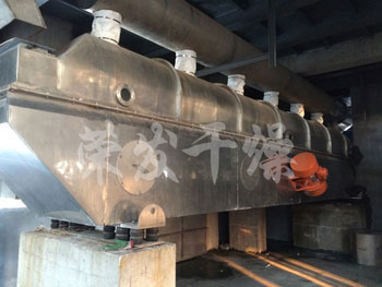 物料自進(jìn)料進(jìn)口進(jìn)入機(jī)內(nèi),在振動(dòng)力作用下,物料沿水平面流化床拋擲,向前連續(xù)運(yùn)動(dòng),熱風(fēng)向上穿過(guò)流化床同濕物料換熱后,濕空氣經(jīng)旋風(fēng)分離器除塵后由排風(fēng)1:3排出.干燥物料由排料進(jìn)口排出。